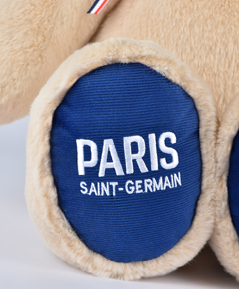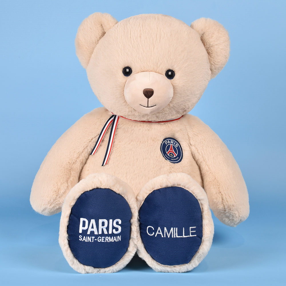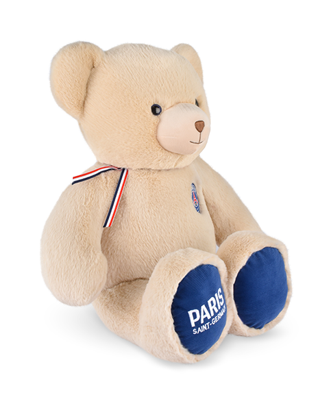 Découvrez cet ours PSG géant de 65 cm, le compagnon idéal pour tout supporter. Plus qu'une peluche, il incarne l'esprit du Paris Saint-Germain avec son écusson officiel et les couleurs du club.