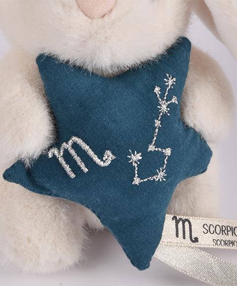 Le Doudou Astro Scorpion est un compagnon tout doux imaginé pour accompagner bébé avec tendresse. Inspiré de son signe astrologique, il tient une petite étoile molletonnée brodée de la constellation du Bélier, apportant une touche poétique et symbolique.