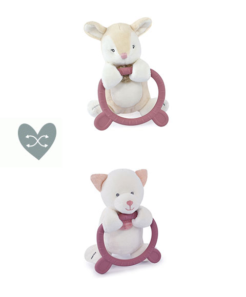 La collection HOULAHOP : ce sont d'adorables petits doudous anneau de dentition qui permettront à bébé de soulager ses maux de dents. Un Doudou à manipuler puisqu'il pourra faire passer la petite tête d'animal au travers de celui-ci et ainsi s'éveiller et s'amuser !