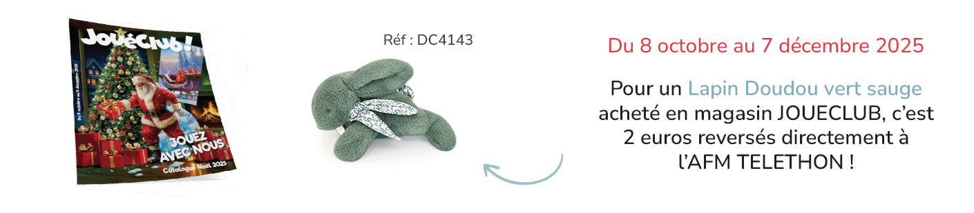 Comme chaque année, nous proposons à la vente un produit, en partenariat avec JouéClub, sur lequel nous reversons 2€ à AFM TELETHON.