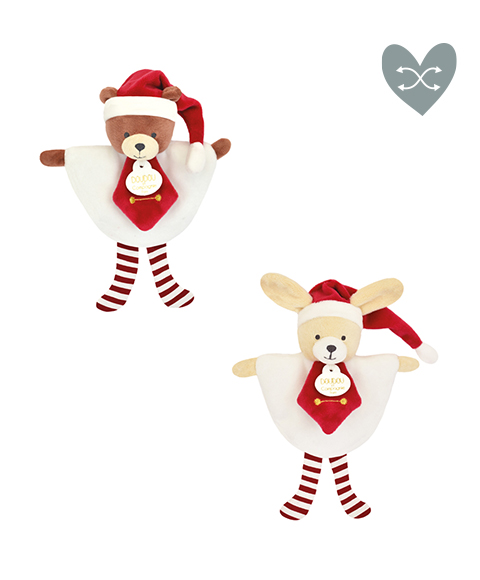 • Un doudou plat Petit Lutin de Noël, vêtu de rouge et blanc, compagnon idéal pour des câlins tout doux (modèle aléatoire)