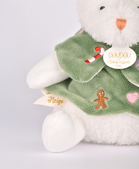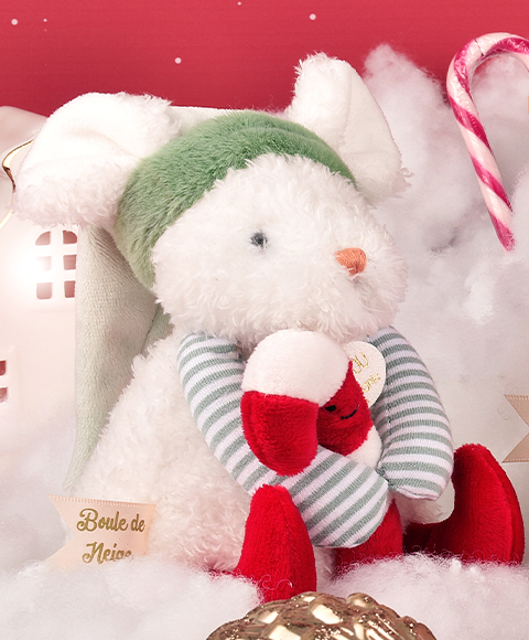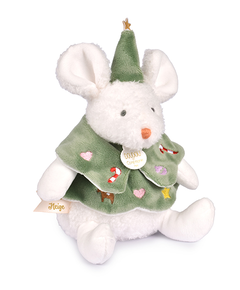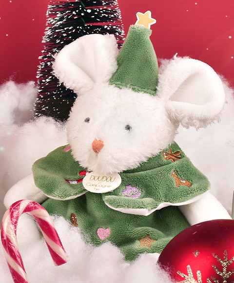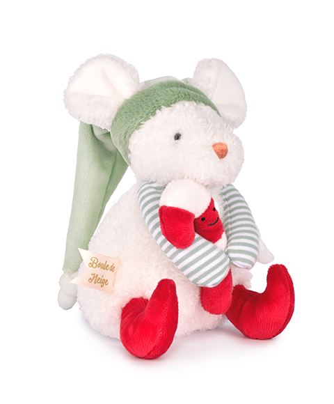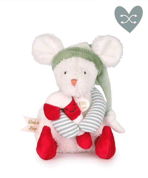 Plongez dans l'univers enchanté de Doudou et Compagnie avec la tendre Souris de Noël Boule de Neige. Ce petit compagnon de 15 cm est le messager de la magie des fêtes de fin d'année, idéal comme cadeau de Noël pour les tout-petits.