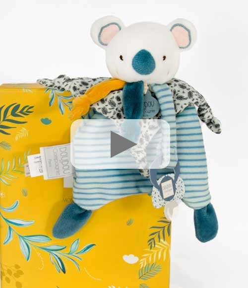Le doudou attache sucette koala accompagne bébé dès la naissance pour lui apporter douceur, réconfort et câlins. C'est un très joli cadeau pour Noël ou pour célébrer une naissance. La petite peluche koala est juste craquante ! Avec son adorable frimousse, ses harmonies de couleurs, ses mélanges de matières très douces et ses touches de langes aux motifs végétaux, elle saura séduire avec grande tendresse petits et grands.