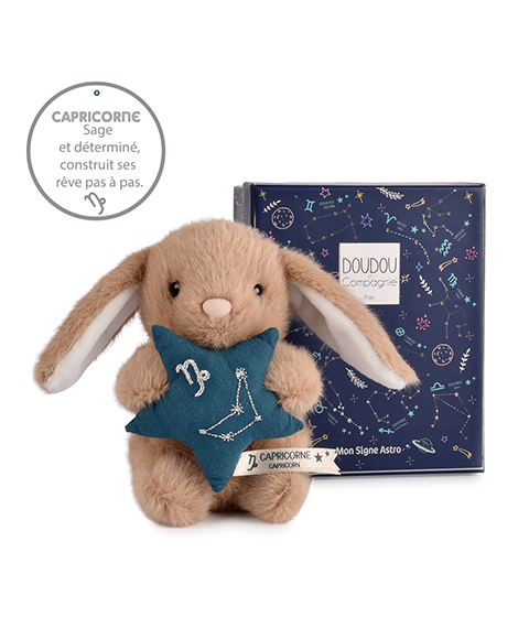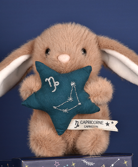Le Doudou Astro Capricorne est un compagnon tout doux imaginé pour accompagner bébé avec tendresse. Inspiré de son signe astrologique, il tient une petite étoile molletonnée brodée de la constellation du Capricorne, apportant une touche poétique et symbolique.
