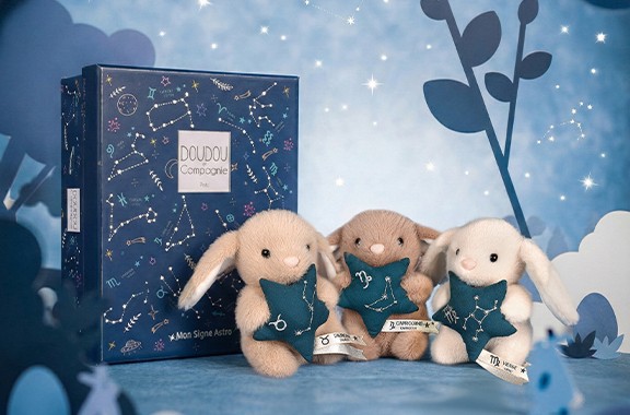 Découvrez la collection Doudous Astro, une gamme de doudous inspirée des signes astrologiques.Un format unique décliné en plusieurs signes pour offrir un compagnon à la fois doux et personnalisé.