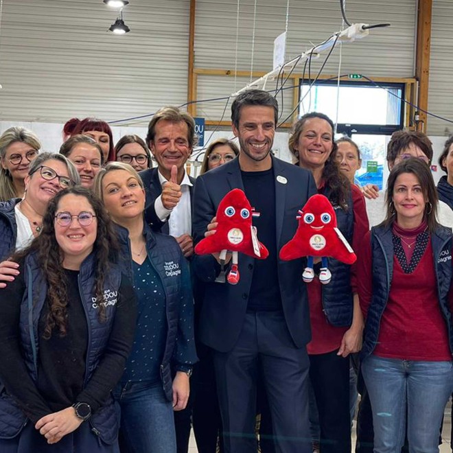 Le 23 janvier 2023 a été lançée la production française des « Phryges », Mascottes des Jeux Olympiques et Paralympiques de Paris 2024 au coeur de la Bretagne, dans notre Manufacture située à la Guerche-de-Bretagne.Par notre dimension industrielle internationale unique dans le secteur du Jouet en peluche et notre volonté de faire perdurer un savoir-faire d’excellence, nous avons été choisi pour développer 60% de la production totale des collections de peluches et doudous. Mascottes des prochains Jeux Olympiques et Paralympiques de Paris 2024, sous licence officielle, elles seront distribuées dans 5000 points de vente, en distribution spécialisée et GSA et également dans tous les secteurs d’activités.