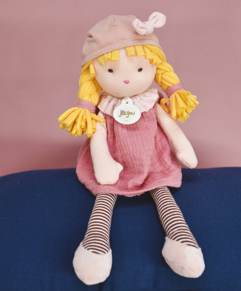 LES DOUCETTES, douces et mignonnes, bohèmes et chic, elles aiment prendre du bon temps, vivre en collectivité et partager de belles histoires. Eva est une doucette un brin rêveuse dans l'âme qui aime découvrir le monde et partager ses aventures. Elle porte une jolie robe terracotta évasée et souple en lange de coton, des collants rayés, ballerines et cheveux blonds coiffés en tresses, elle aime s'exprimer artistiquement pour le plaisir de ses ami(e)s.Une création signée Doudou et Compagnie. Cadeau à offrir dès la naissance.