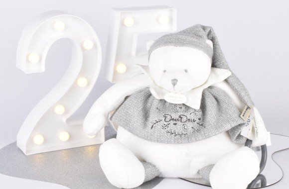 Un véritable bijou de tendresse pour célébrer les 25 ans de DOUDOU ET COMPAGNIE. Ces ours incarnent la douceur et la pureté grâce à leur design raffiné et leurs finitions élégantes telles que leurs broderies. Ces Doudous Collector seront un cadeau inoubliable, pour la naissance, pour un baptême... symboles d’Amour et d’élégance.