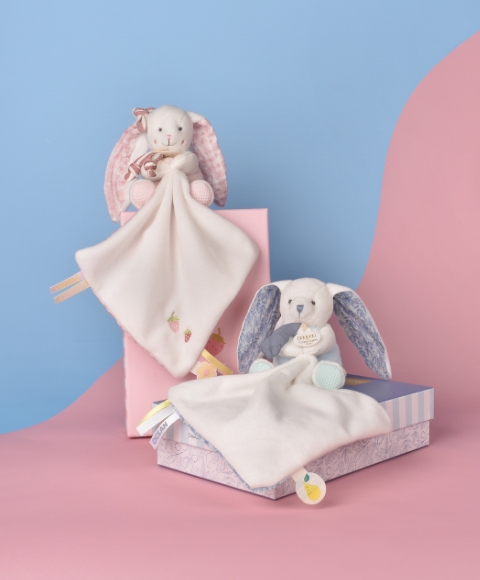 Ce petit lapin de 10 cm avec son doudou assorti reflète toute la délicatesse et le raffinement de la collection Coeur Océan. Ses couleurs pastel apaisantes, ses imprimés subtils et son format compact en font un compagnon doux, facile à attraper par les petites mains et à emporter partout. Présenté dans une boîte cadeau élégante, il constitue un cadeau de naissance plein de tendresse et parfait pour les premières attentions de bébé.