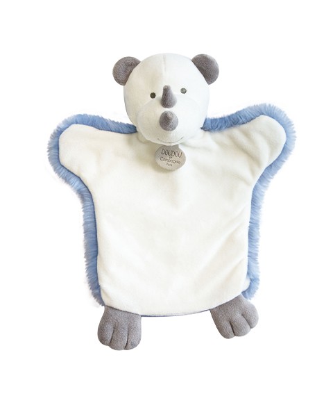 Cette belle marionnette à main rhinocéros est 2 en 1 ! Elle peut servir de doudou réconfortant pour apaiser bébé, mais aussi de marionnette pour raconter des histoires enchanteresses ! Dotée de couleurs claires, elle possède un joli mélange de matières douces. Elle est parfaite pour partager de doux instants de complicité. Ce produit ne possède pas de boite, pensez au sac cadeau.