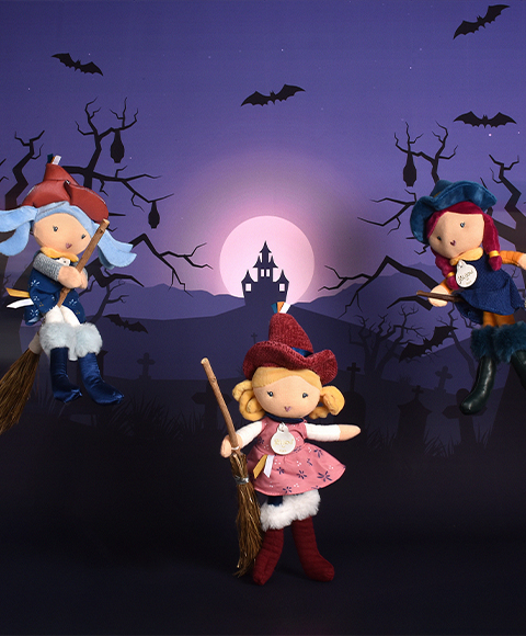 Pim, Pam, Poum, 3 poupées qui se déguisent en gentilles sorcières, prêtes à suivre tous les enfants dans leurs bulles imaginaires. Petites bottines, chapeaux pointus et petites robes, chacune a son style et attend avec impatience de découvrir ses dons enchanteurs.