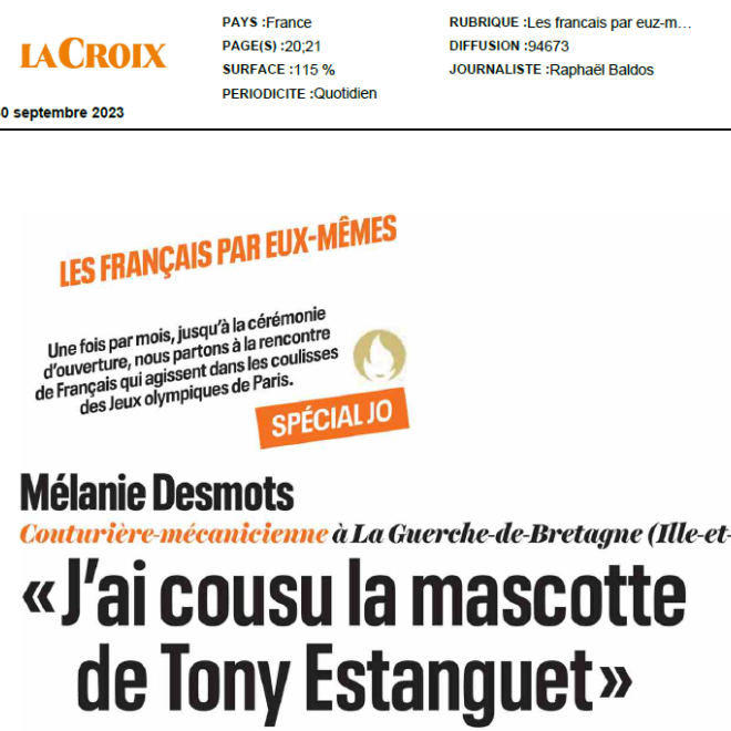 "J'ai cousu la Mascotte de Tony Estanguet" - La Croix