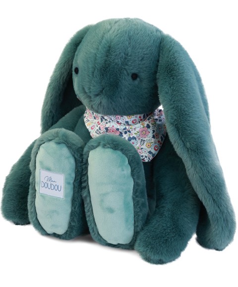 Découvrez la peluche lapin xxl de couleurVerte 50 cm, un doudou peluche géant qui vous enveloppera dans une bulle de douceur. Son pelage moelleux, sa couleur vert tendre et son bandana fleuri exclusif en font un compagnon sensoriel idéal.