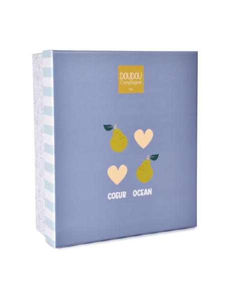 Un cadeau de naissance idéal, le Lapin Cœur-Océan séduit par son design délicat et sa qualité, signature de Doudou et Compagnie.
